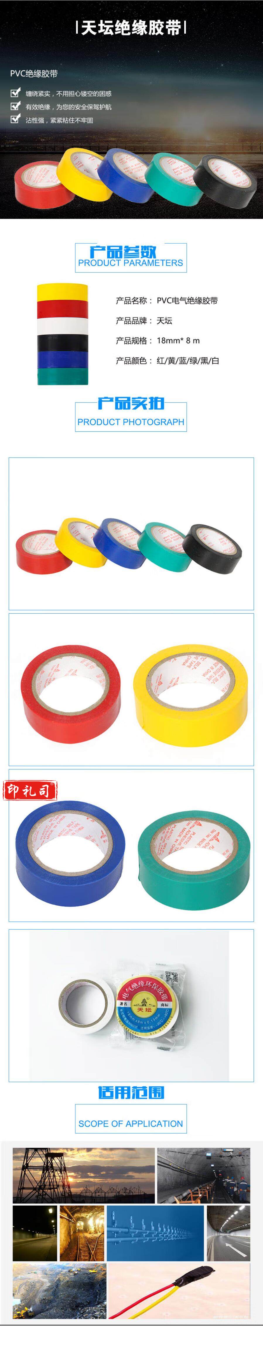 天坛 PVC电气绝缘胶带 电工胶带 18mm*8米 红色塑包布 (10卷/筒)