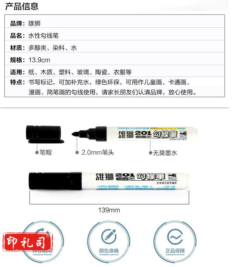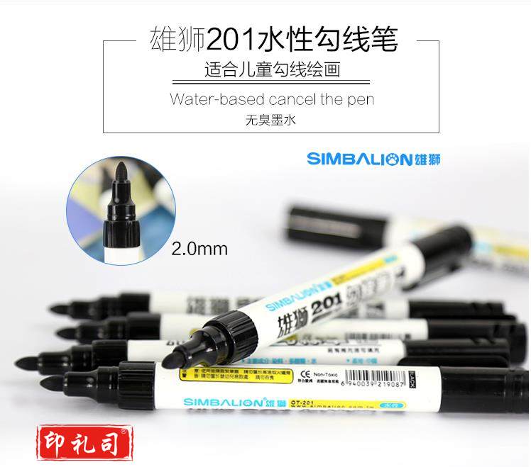 雄狮201 黑色白板笔 水性勾线笔粗头记号笔 无味水彩笔可加墨水