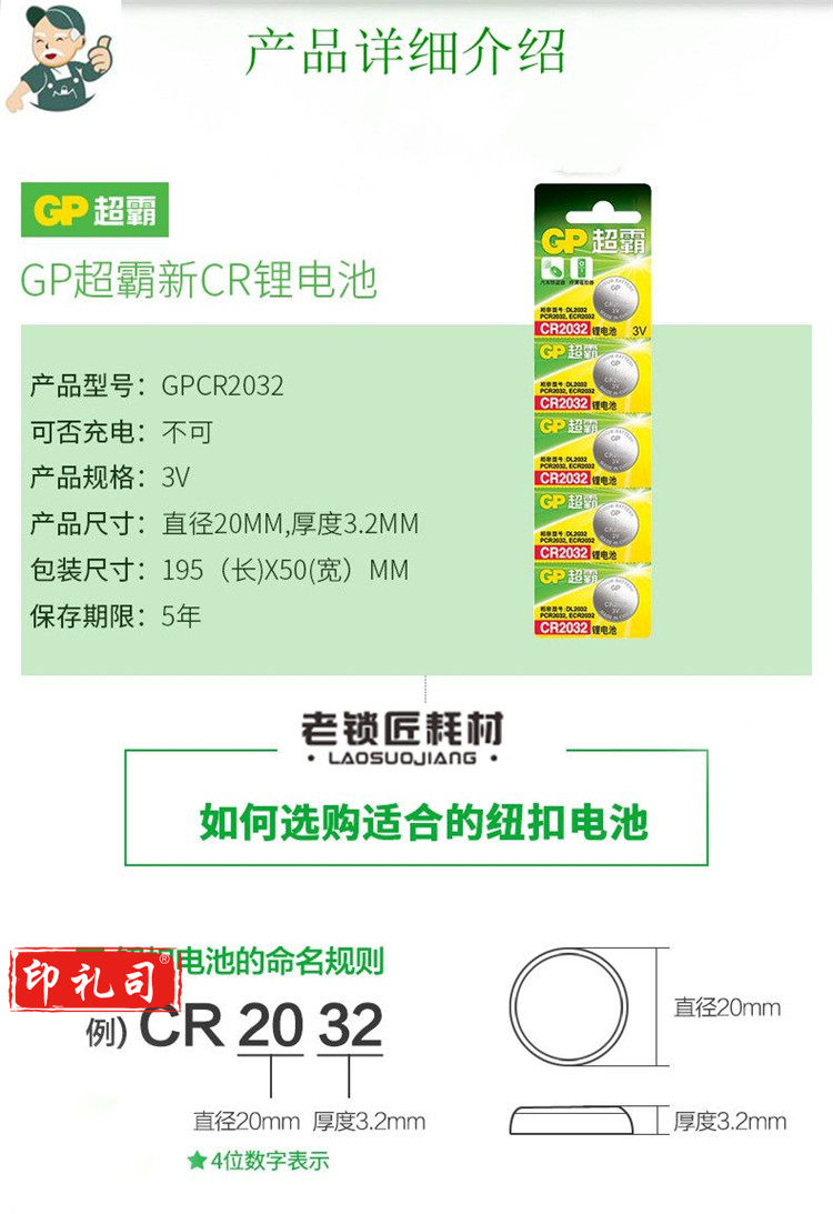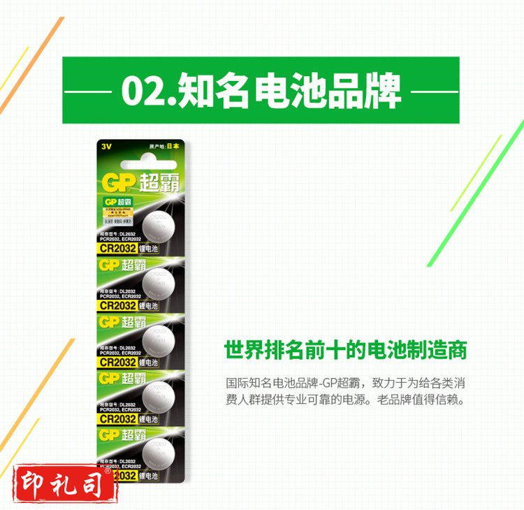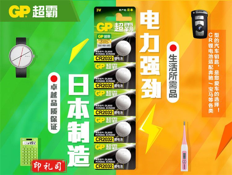 超霸 CR2032纽扣电池 5粒卡装 3V锂电池