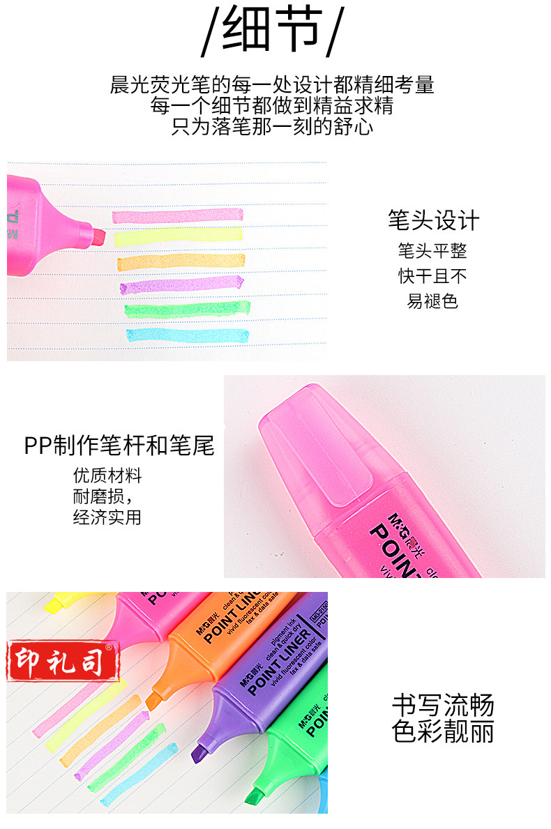 晨光 MG-2150彩色荧光笔 醒目荧光笔 {下单备注颜色}多色记号笔斜头标重点