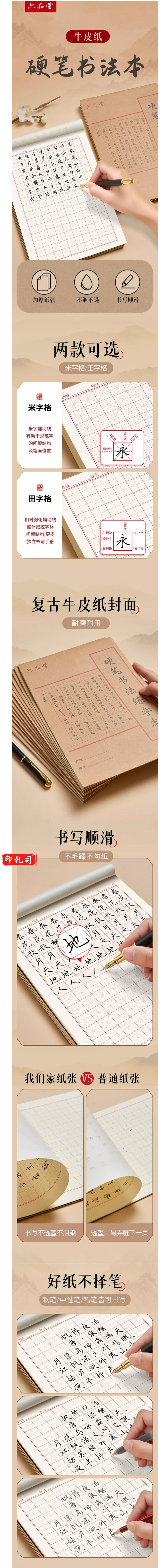 六品堂 硬笔书法练字本 田字格 5本装 货号:JC
