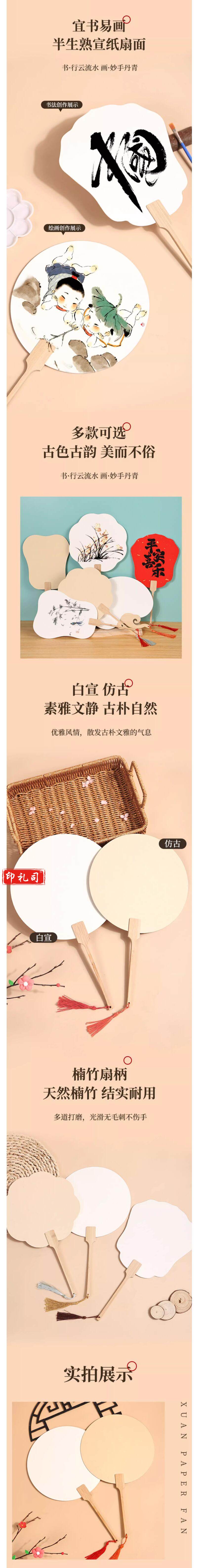 空白宣纸团扇 白宣混装 10把一组 货号:LJ