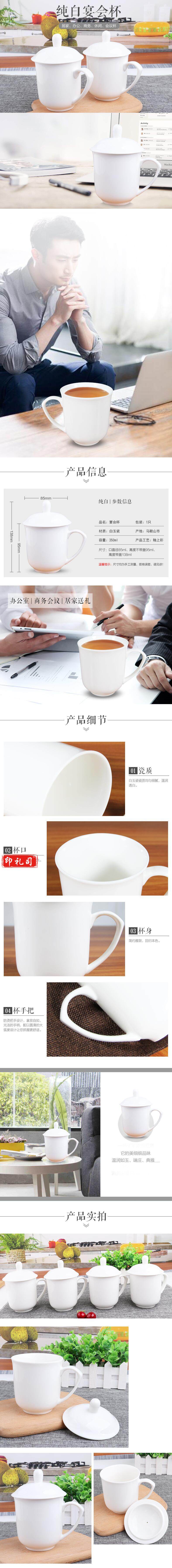 带盖纯白陶瓷茶杯 尺寸约85mm*95mm