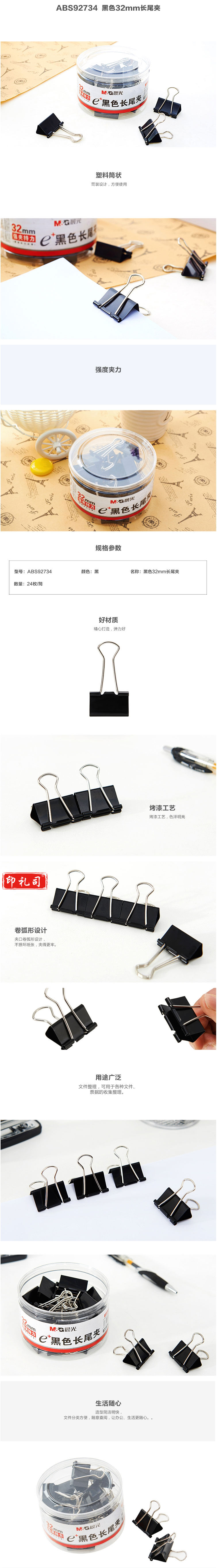 晨光 32mm黑色长尾夹ABS92734 24个/筒