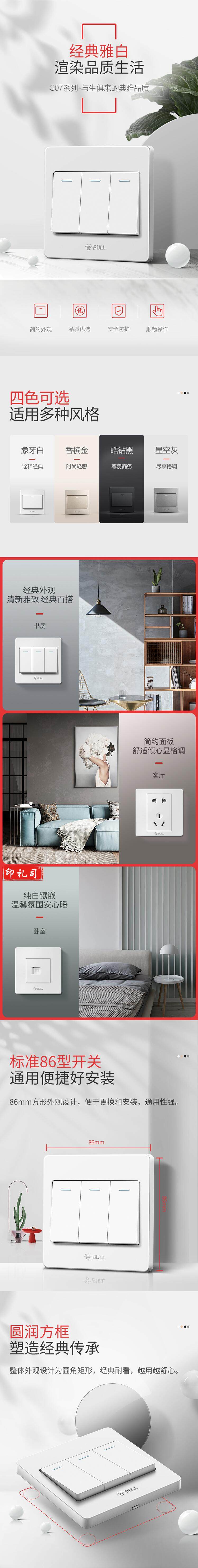 公牛 开关插座 三开单控开关 86型 G07K311C