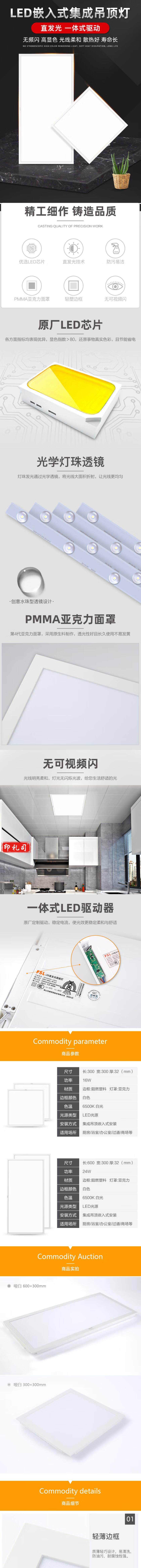 佛山照明 300*300 白光16W 集成吊顶灯led吸顶灯平板灯面板灯厨卫灯