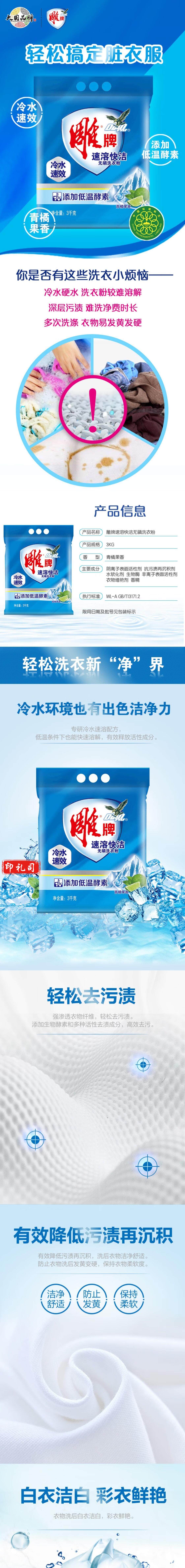 雕牌 3kg 除菌无磷洗衣粉强效去渍