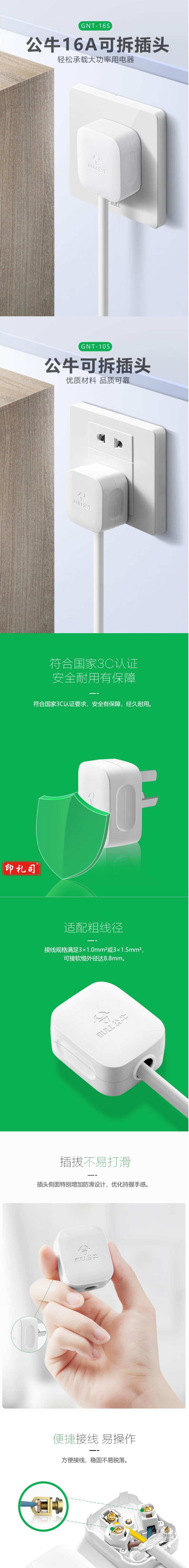 公牛 GNT-16 三极插头16A插头无线插头 大功率插头
