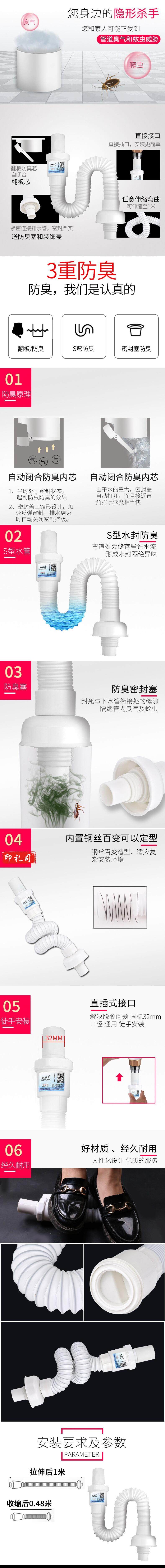 洗脸盆S弯防臭下水管 洗脸盆软管配件下水器塑料伸缩节返水弯