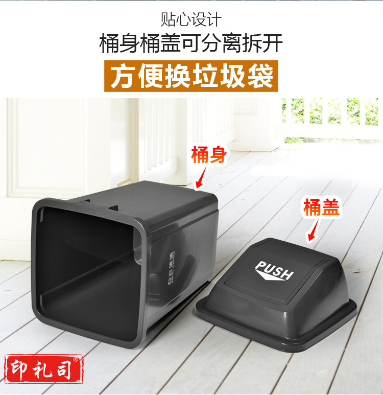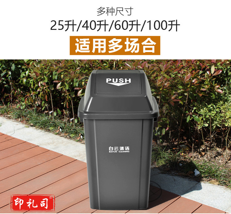 白云 100L方形弹盖垃圾桶 (灰)