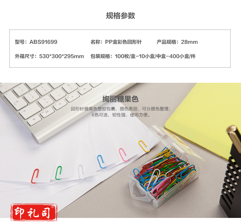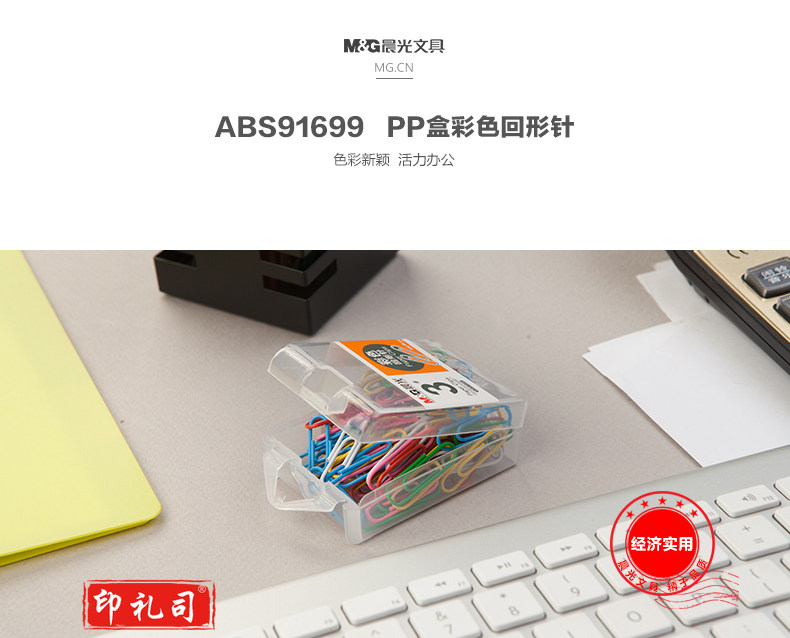晨光 3号彩色回形针 曲别针 100枚 盒装ABS91699