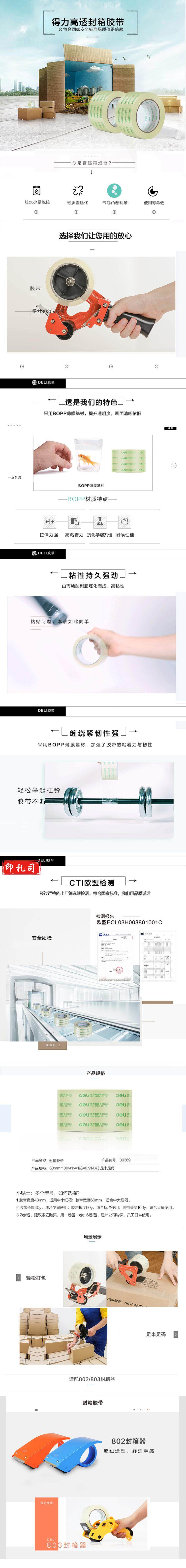 得力(deli)高透明封箱胶带 仓库打包胶带60mm*100y*50um(单卷)30369
