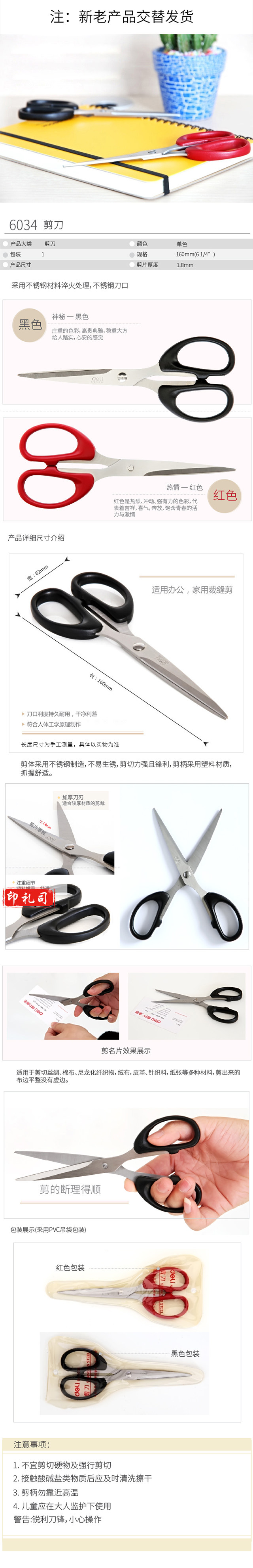 得力160mm小号办公剪刀 手工剪刀 6034(红)
