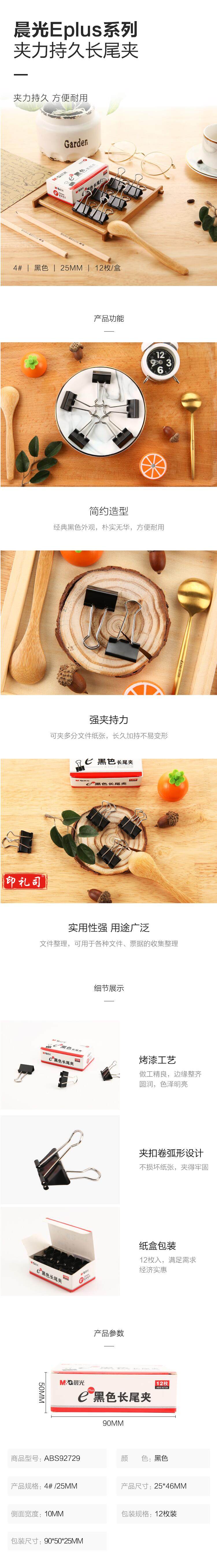晨光 25mm黑色长尾夹 12只装 中号金属票据夹燕尾夹ABS92729