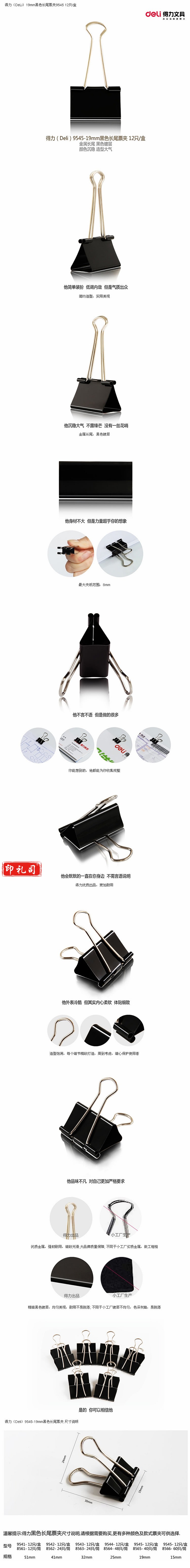 得力 9545 长尾票夹 19mm 12只/筒燕尾夹 黑