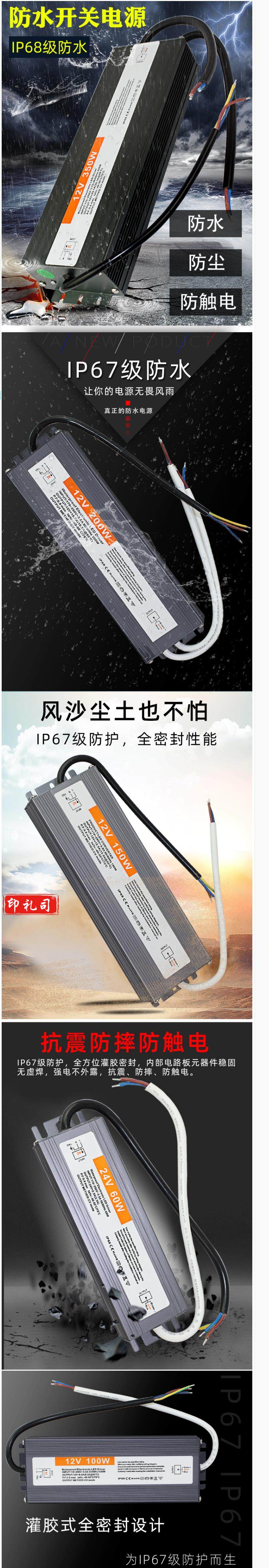 超薄防水雨LED开关电源12V 36W 货号:JC