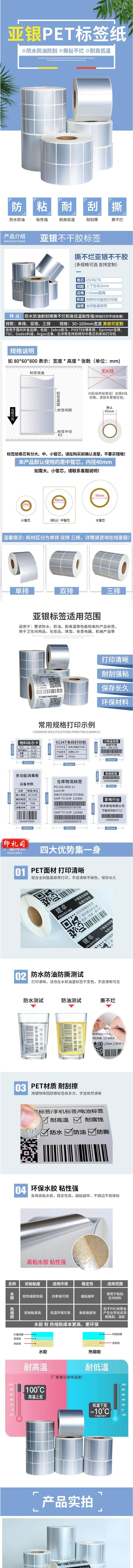 亚银标签纸 哑银不干胶条码打印纸 70*50*1000张 单排 货号:YC