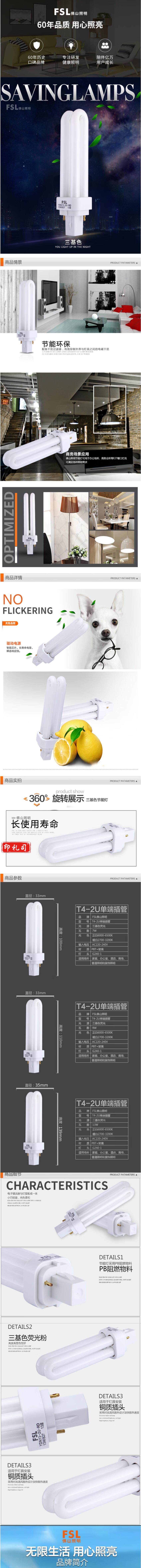 佛山照明 13W插拔节能灯 U型插拔灯管T4-2U节能灯泡2针白光