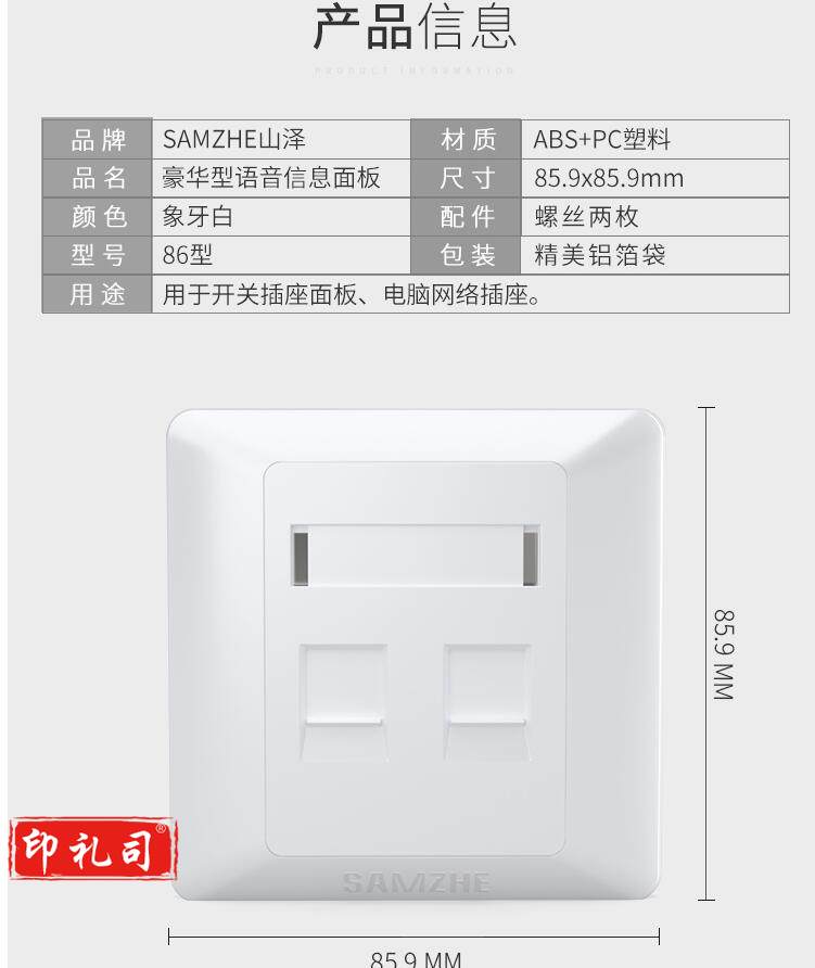 山泽(SAMZHE)WAN-14 电脑插座网口网络面板 加厚86型面板 四口