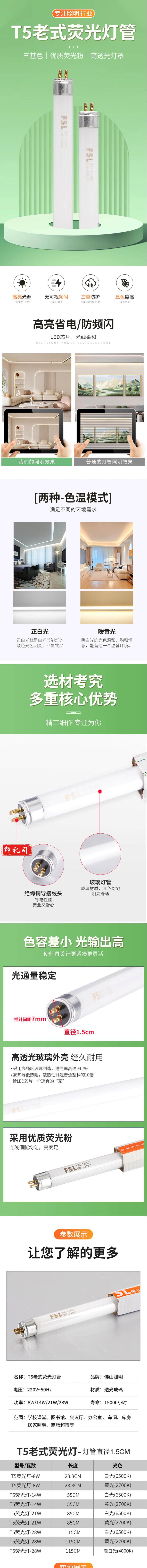 佛山照明 T5灯管14W 600mm 三基色传统灯管