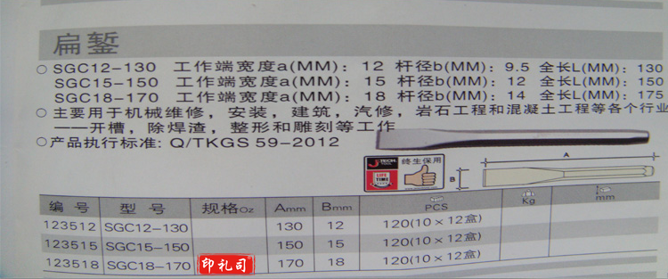 捷科 JETECH 扁錾 SGC12-130 扁錾钎头 货号:JC