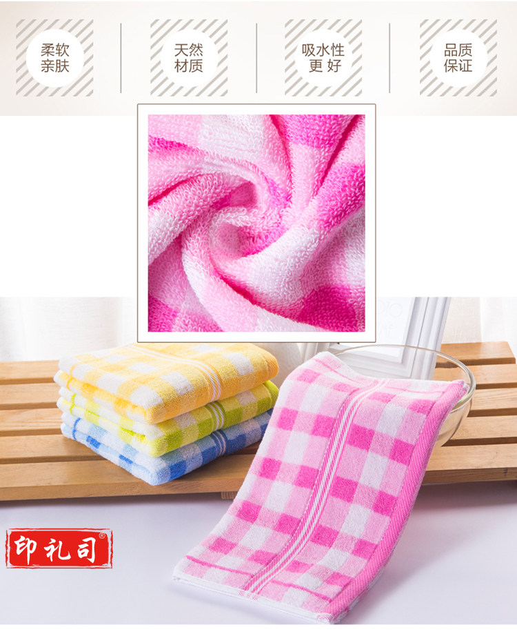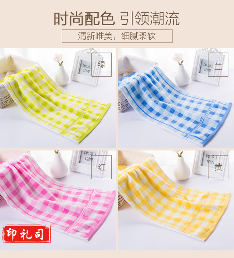 洁丽雅 0065 纯棉 毛巾 68*32cm 82克 格子 绿黄红蓝 颜色随机