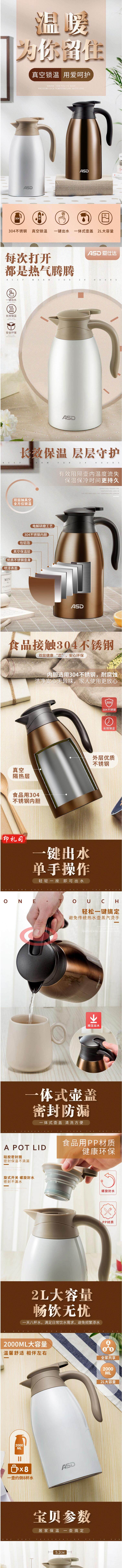 爱仕达 2L热水壶 保温壶 真空304不锈钢 RWS20P4
