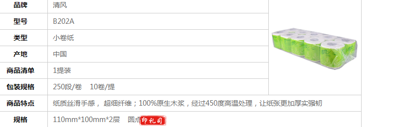清风卷纸 卫生纸 250段10卷/提 B202A
