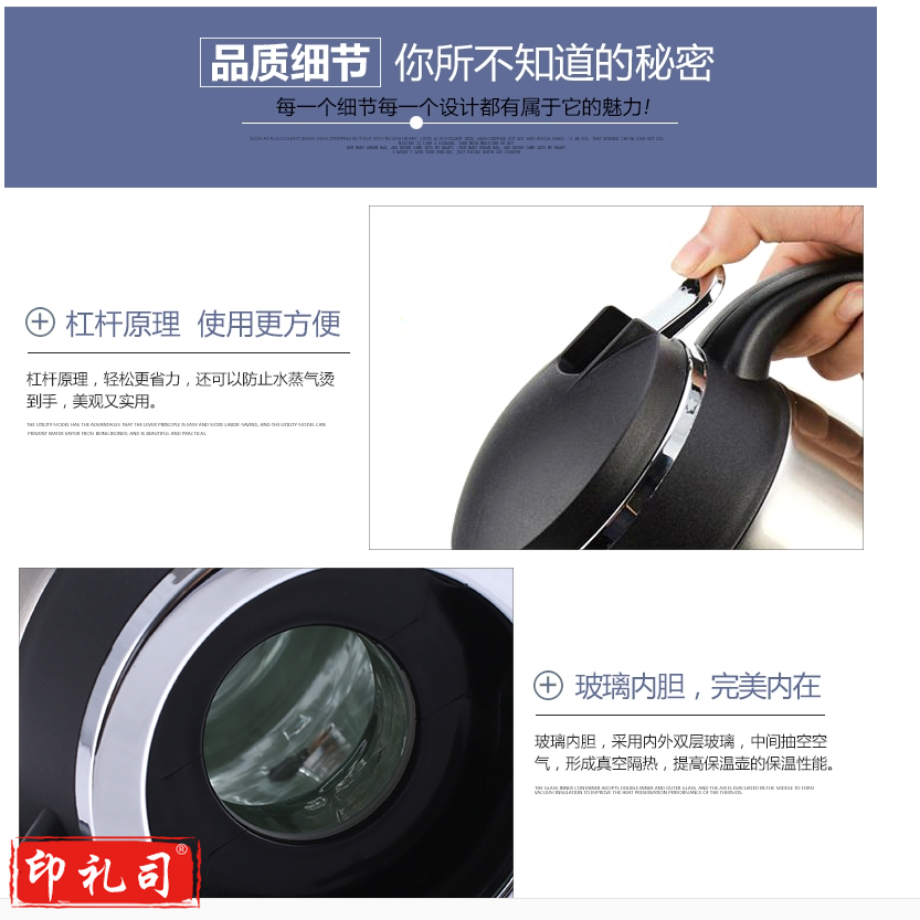 不锈钢保温壶 1.9升暖壶 玻璃内胆热水壶大容量暖瓶