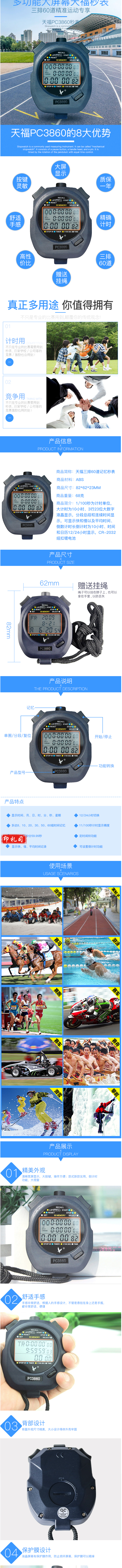 天福 PC3860 多功能秒表 三排60道 计时器 电子户外运动裁判田径跑步计时秒表