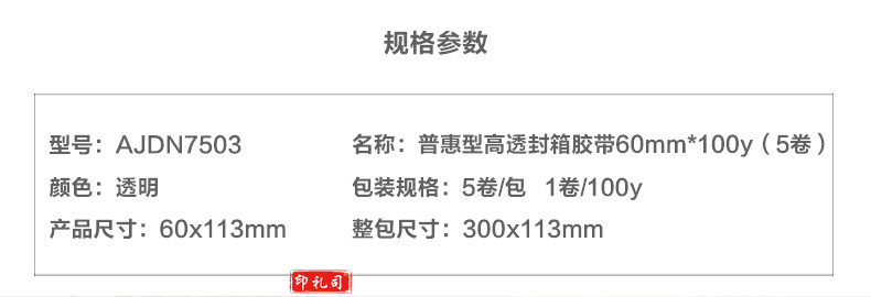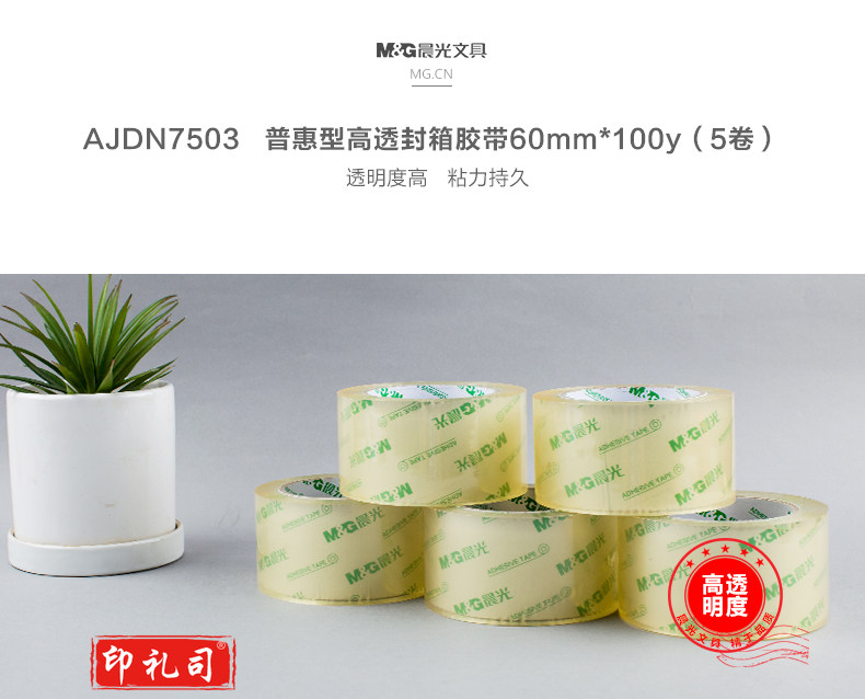 晨光普惠高透封箱胶带60mm*100y5卷AJDN7503