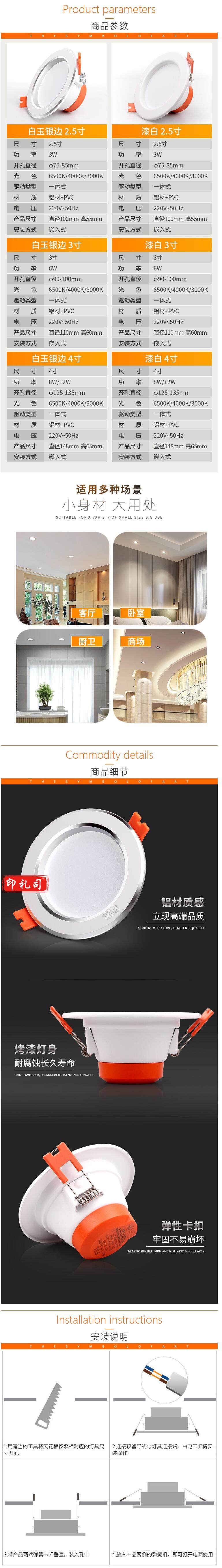 佛山 LED筒灯3寸 6W/6500K 开孔95mm