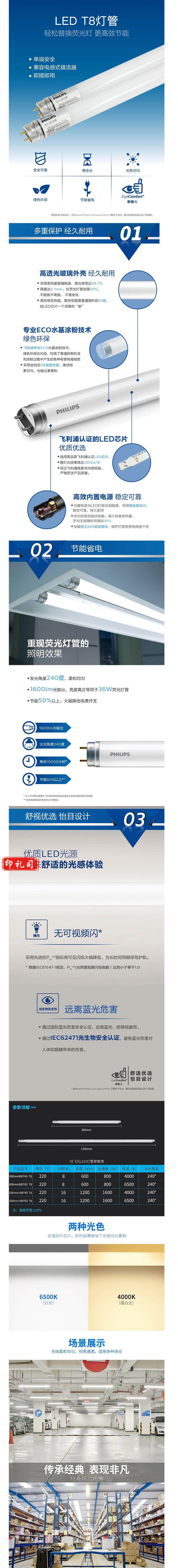 飞利浦 LED T8 双端进电灯管 8W 600mm