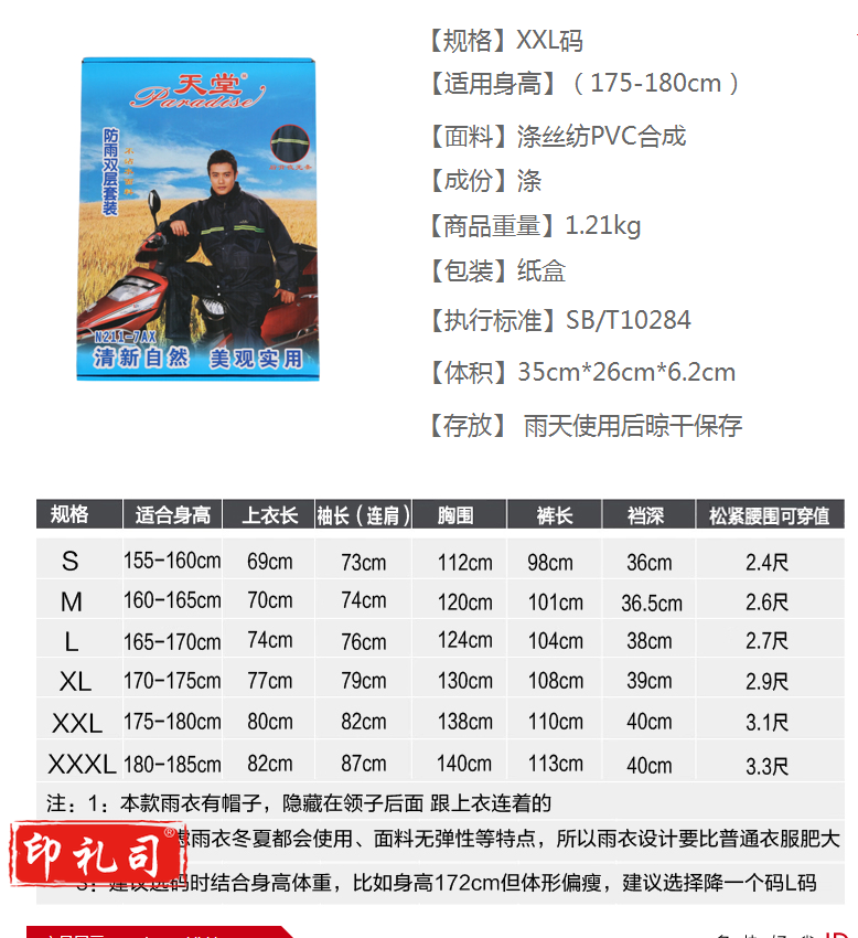 双层夜光型雨衣套装