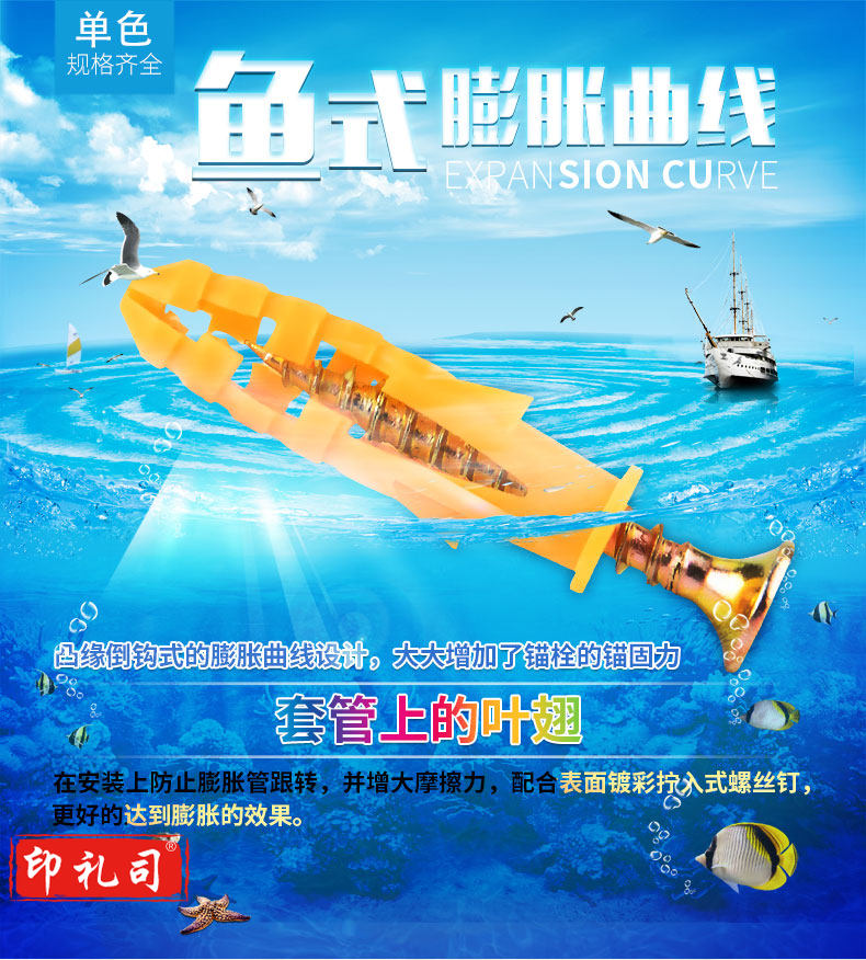 小黄鱼尼龙胀钉 6*60mm 塑料膨胀管螺栓膨胀螺丝 50套/包