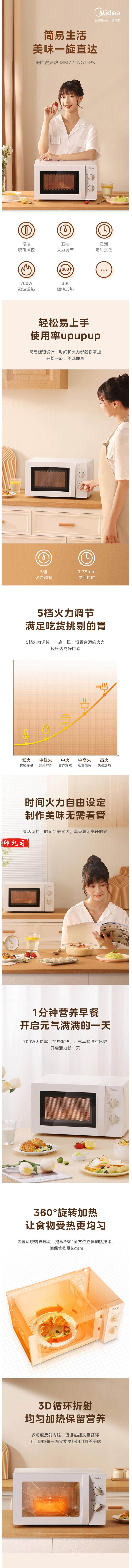美的 微波炉 转盘加热智能菜单 易清洁面板 MM721NG1-PS