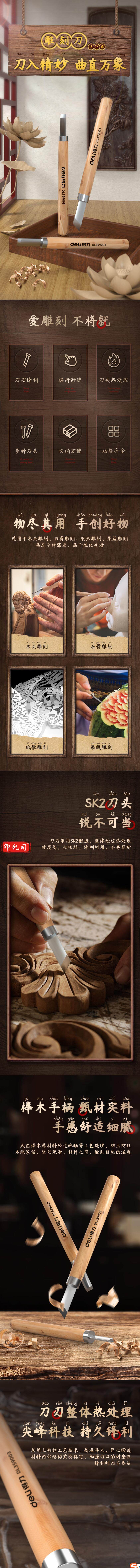 得力 雕刻刀3件套 榉木柄 手工刀雕刻笔 DL359003