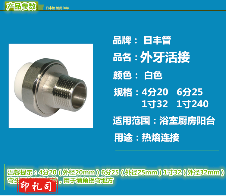 日丰PPR外牙活接 日丰水管配件 6分 25*6分 货号:YC