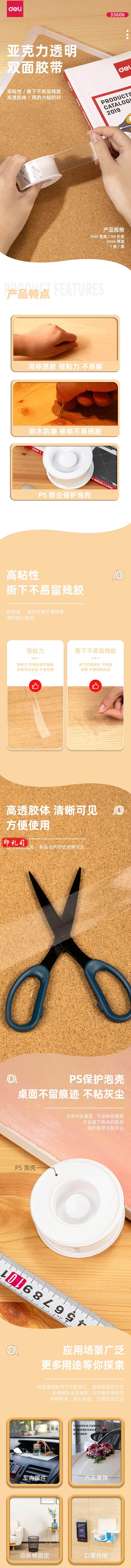 得力 30mm*1m纳米强力无痕魔力胶带 透明双面胶 33606