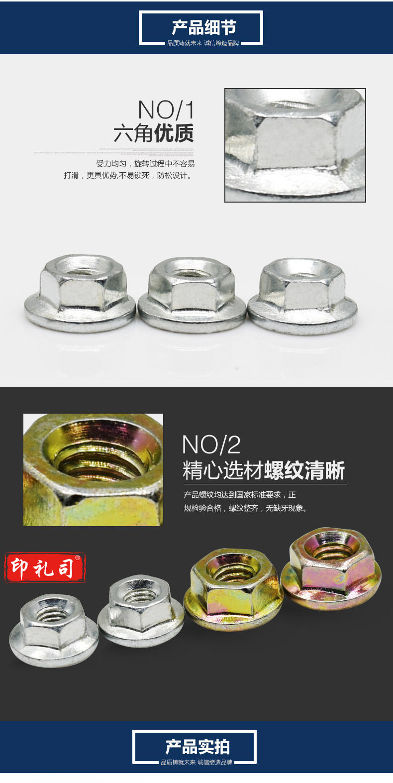 法兰螺母带垫锁紧螺母防滑螺帽六角法兰面螺母m6