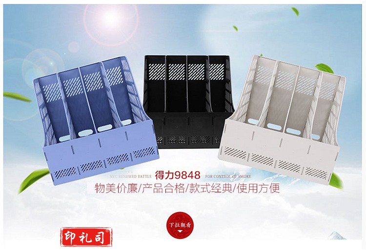 得力 9848 四联文件框 四联文件架文件栏 蓝色