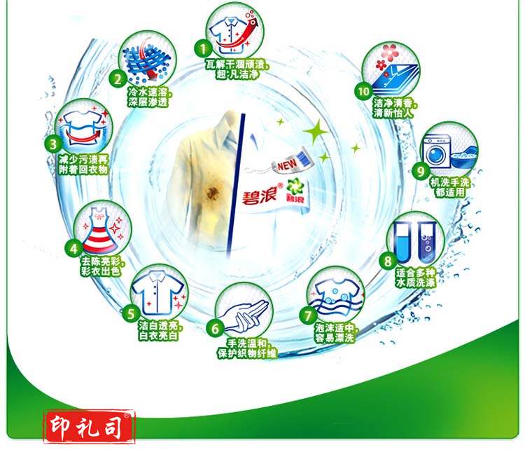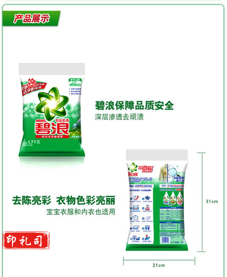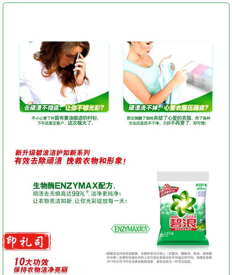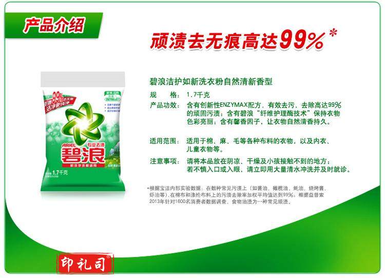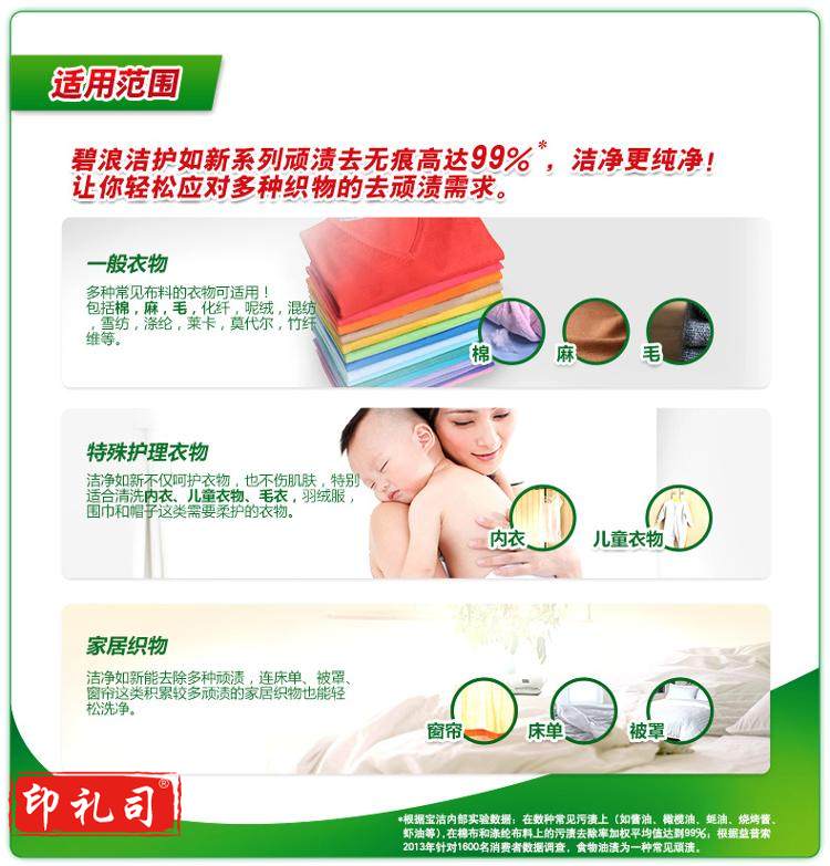 碧浪洗衣粉1.55公斤*6包 自然清新强力除菌去渍 ;箱