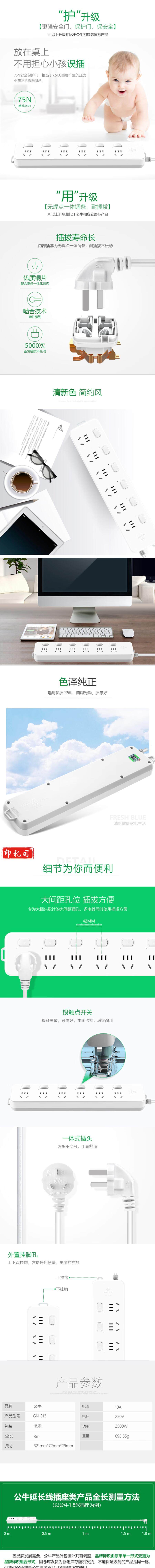 公牛GN-313 6位分控 3米多位插座 超功率保护插座移动排插多位插座插排线板