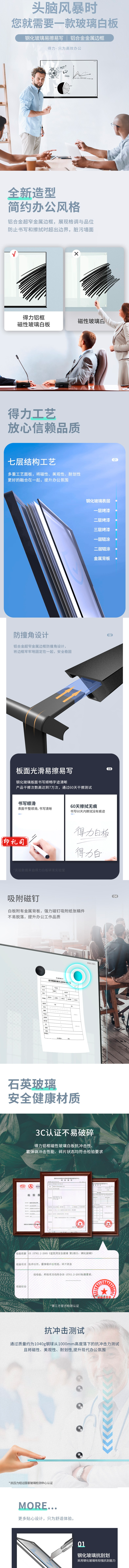 得力 90*60cm铝框磁性悬挂式钢化玻璃白板50050 写字板黑板