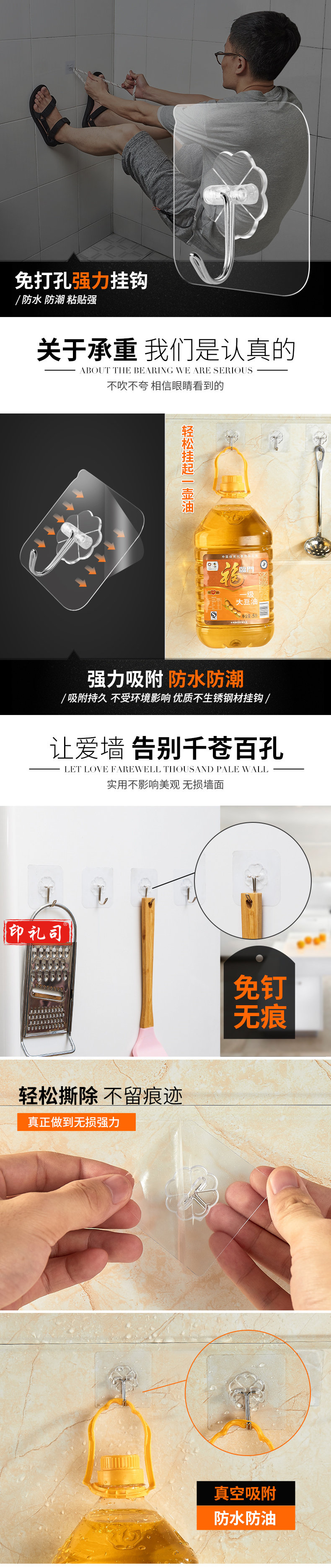 无痕强力粘钩 塑料胶粘挂钩 不锈钢钩子(单位:包,20个/包)
