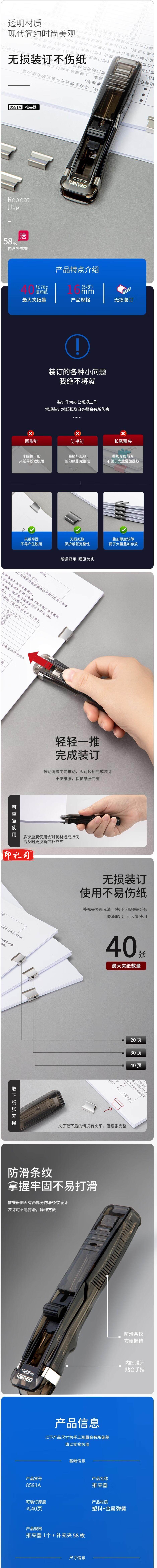 得力 推夹器+58枚补充夹(可夹40张) 8591A+8592-1PCS