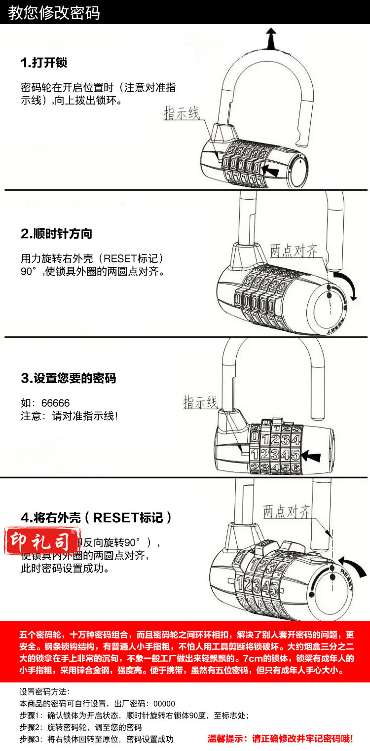 巨联(JULIAN)U型4位密码锁 颜色随机