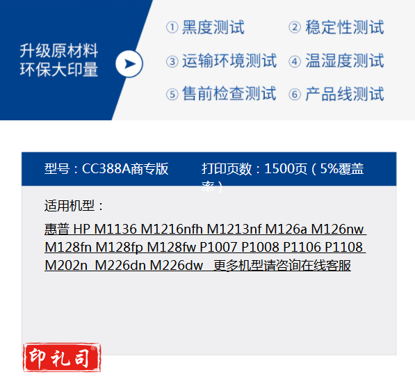 盈佳CC388A 88A黑色硒鼓 适用惠普M1136 P1007 P1108 P1106 m1216nfh m1213nf M126anw