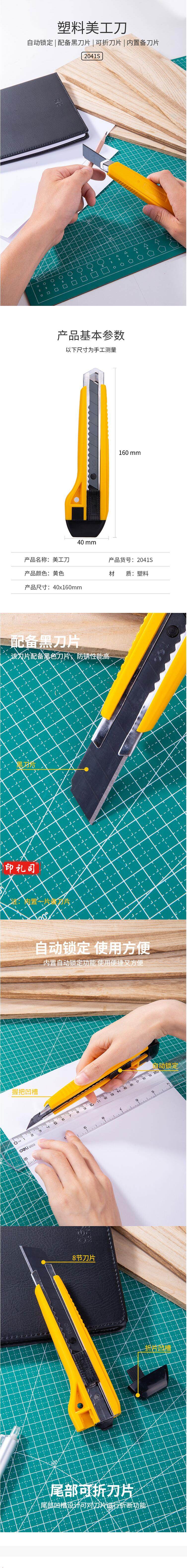 得力 大号黑刃自锁美工刀/壁纸刀 附备用刀片 黄色2041S
