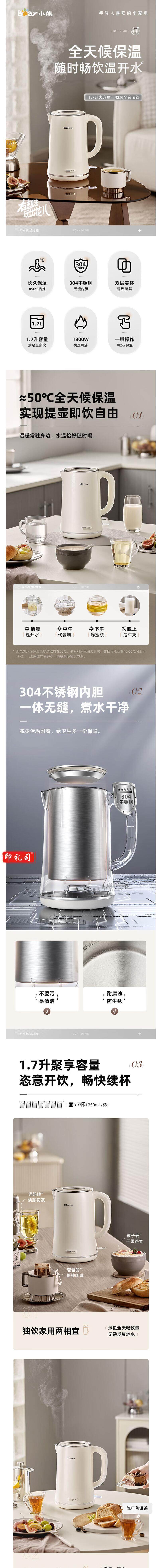 小熊 电水壶烧水壶 1.7L ZDH-D17H1 货号:JC